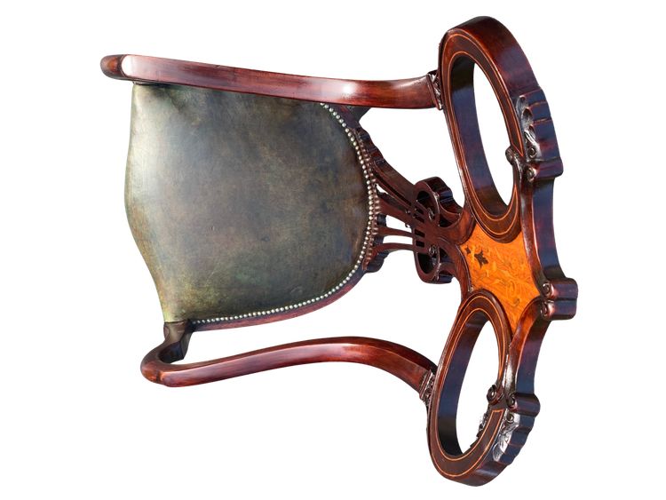 Les accoudoirs mouvementés, assises en cuir époque XIX éme.
